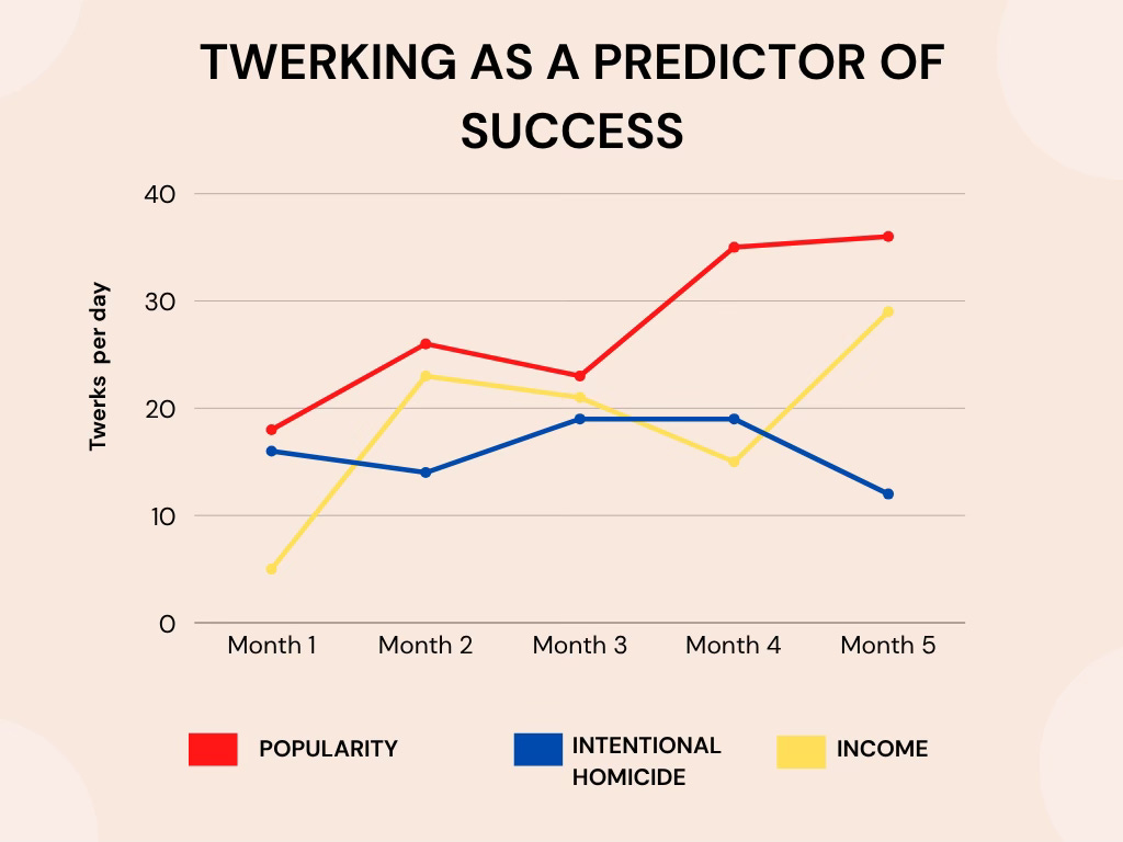 So anyway, I think there’s lot of overlap between twerking ability and social media success, which is basically the communal punch bowl these days. I bet if we did a study, we’d find that really good twerkers would be overrepresented in accounts with over ten thousand followers. I’d also like to compare twerking to other markers of societal success: home ownership, income, jet skiing. Or maybe criminality. Can you imagine a serial killer twerking? I can’t. If someone twerks, I’d trust them with a HIIT class, and maybe, with my life.